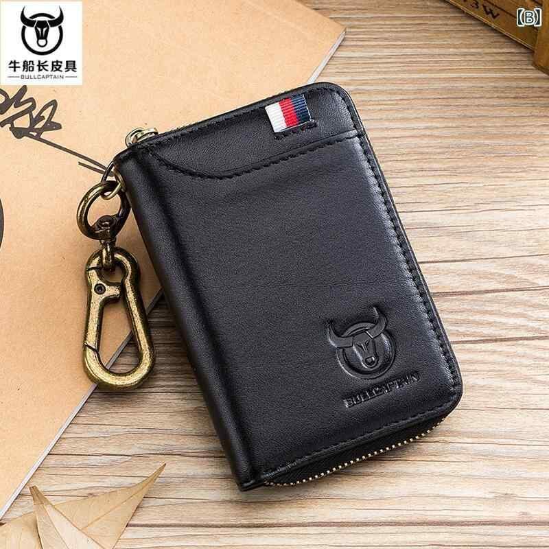 キーケース メンズ 本革 牛革 トップグレインレザー スキミング防止 盗難防止 耐摩耗性 ウエスト掛け 多機能 2in1 小銭入れ付き ドアキー スマートキー 収納 シンプル 無地 型押し 通勤 ビジネス 普段使い デイリーユース