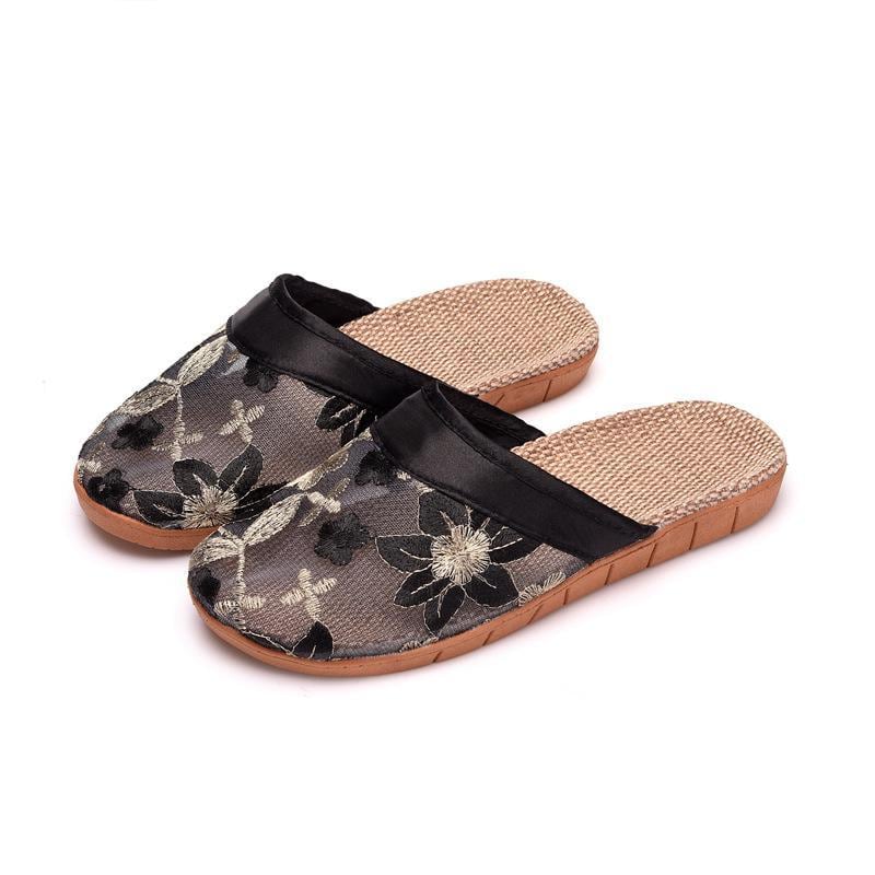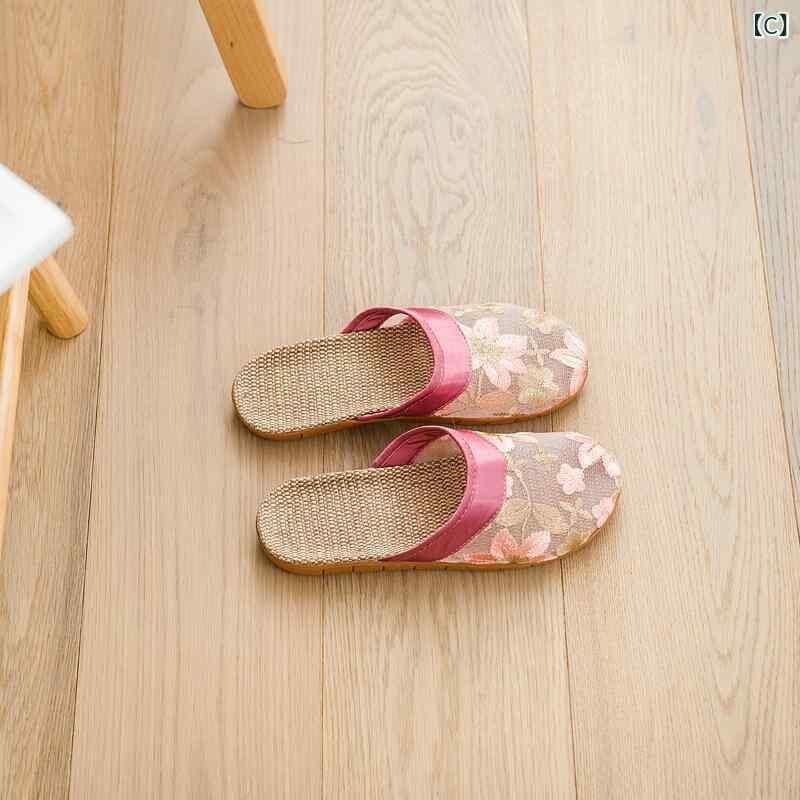 スリッパ レディース レース 麻 室内履き ルームシューズ 夏用 接触冷感 滑り止め 通気性 耐久性 EVAソール クッション性 和風 和モダン ブラック グレー ピンク