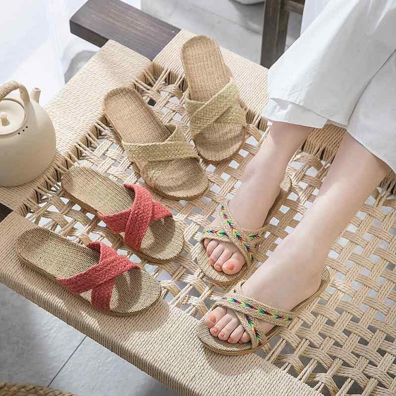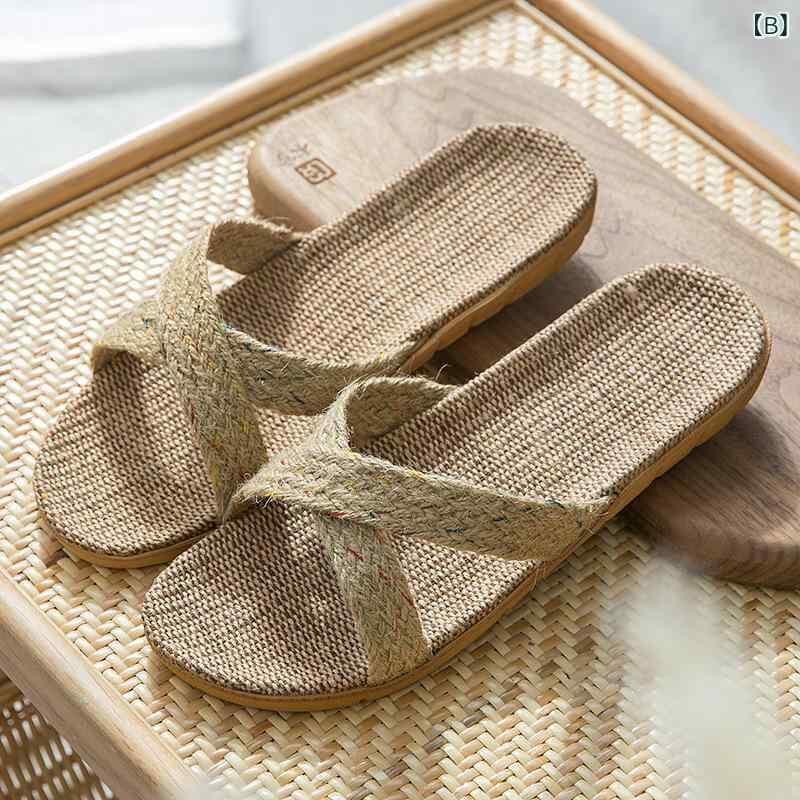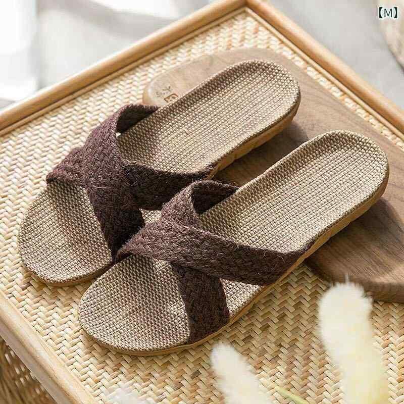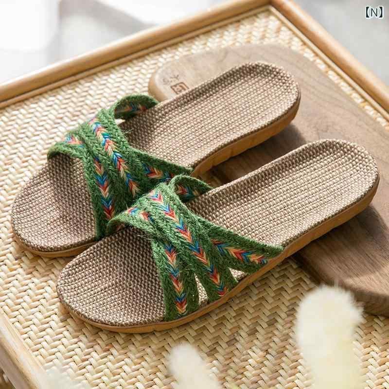 ルームシューズ 男女兼用 カップル用 スリッパ サンダル リネン 亜麻 綿麻素材 EVAソール 厚底 室内履き 防滑 軽量 オープントゥ 通気性 普段使い 来客用 カジュアル 夏用