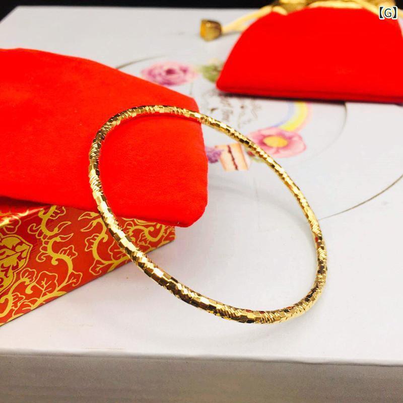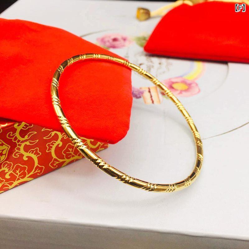 レディース ブレスレット バングル 3mm幅 細身 華奢 銅製 ゴールドメッキ ワイヤー 花柄 カービング 閉鎖型 サークル ボヘミアン エスニック 韓国ファッション