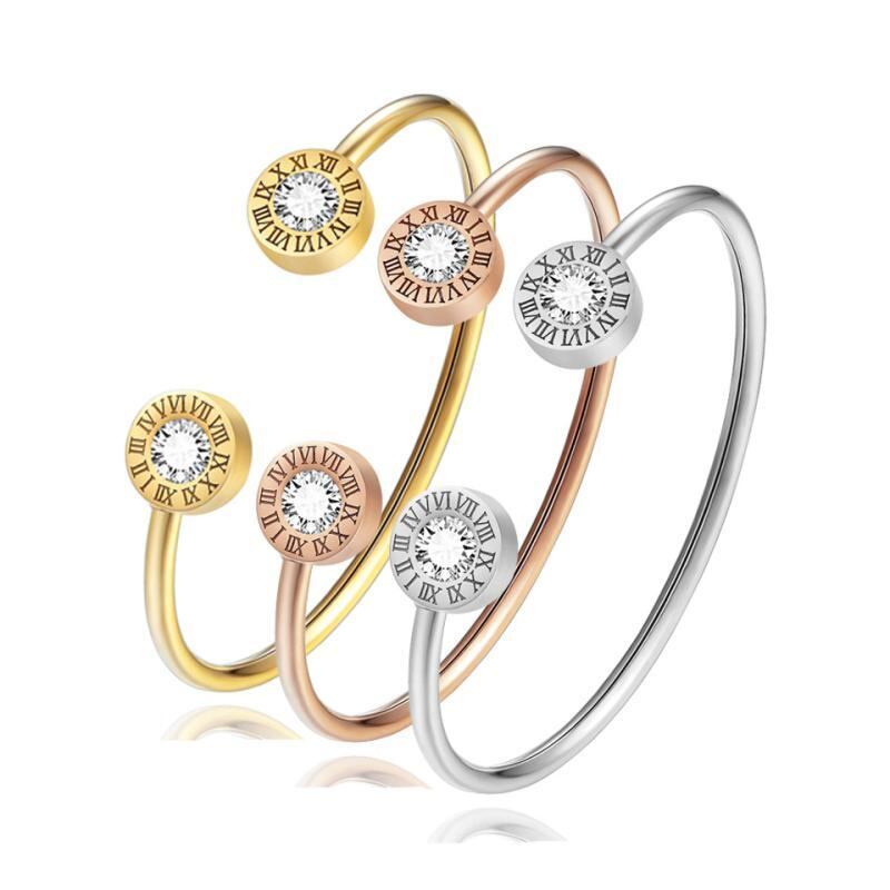 ブレスレット レディース 女性用 ステンレス チタン鋼 ローマ字 アルファベット ジルコニア ラインストーン 埋め込み バングル クラシック 定番 シンプルモダン おしゃれ SNS風 ゴールド ローズゴールド シルバーカラー 幾何学模様 アクセサリー