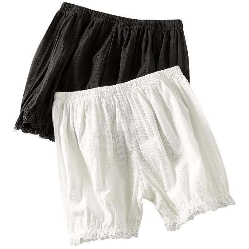 ショートパンツ レディース JKスタイル かぼちゃパンツ バルーンシルエット 綿100% 薄手 夏用 透け防止 見せパン対策 インナー ペチパンツ レース付き スカート下 ワンピース下 涼しい 快適 ゆったり ホワイト 黒