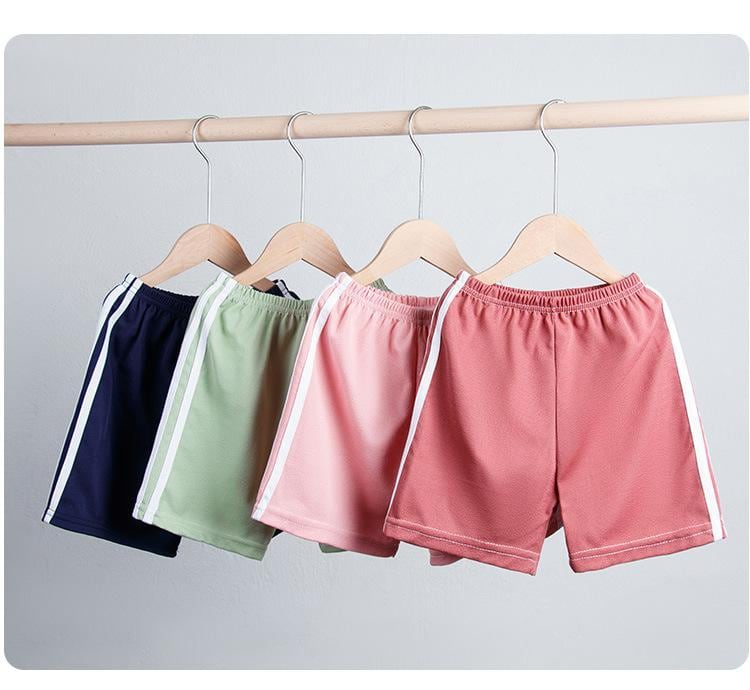 キッズ ショートパンツ 男女兼用 ベビー 子供 接触冷感 韓国風 カジュアル 無地 おしゃれ トレンド サイドライン スポーツ 運動着 綿混 ポリエステル 三分丈 短パン 黒 黄色 ピンク 緑 ネイビー