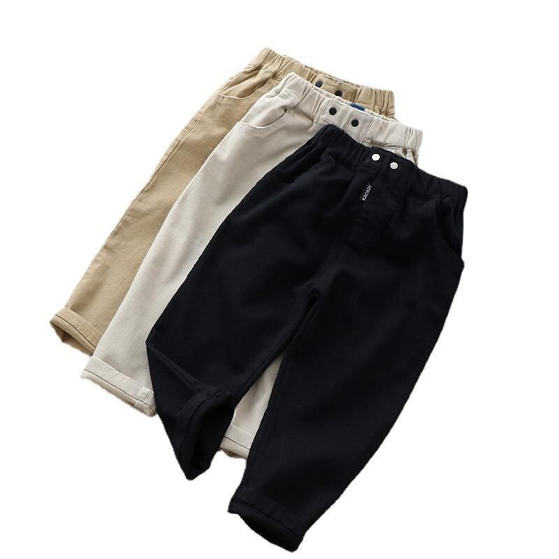 パンツ キッズ 男の子 春 秋 カジュアル スポーツ キャロットパンツ ゆったり リラックス シンプル 韓国風 長ズボン 綿 コットン 柔らか素材 無地 ウエストゴム ブラック カーキ オフホワイト