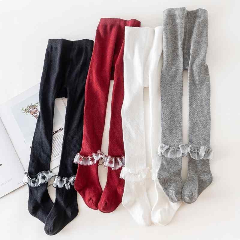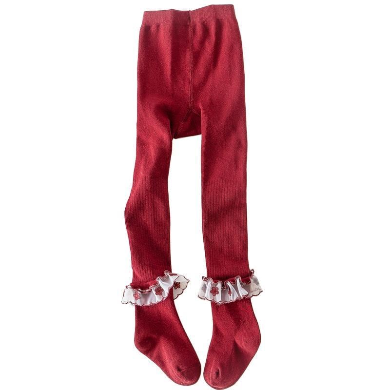 タイツ ベビー 女の子 キッズ ロリータ風 プリンセス レース フリル 花柄 コットン 綿混紡 インナー 普段使い お出かけ 春 秋 子供服 ホワイト グレー ブラック ワインレッド