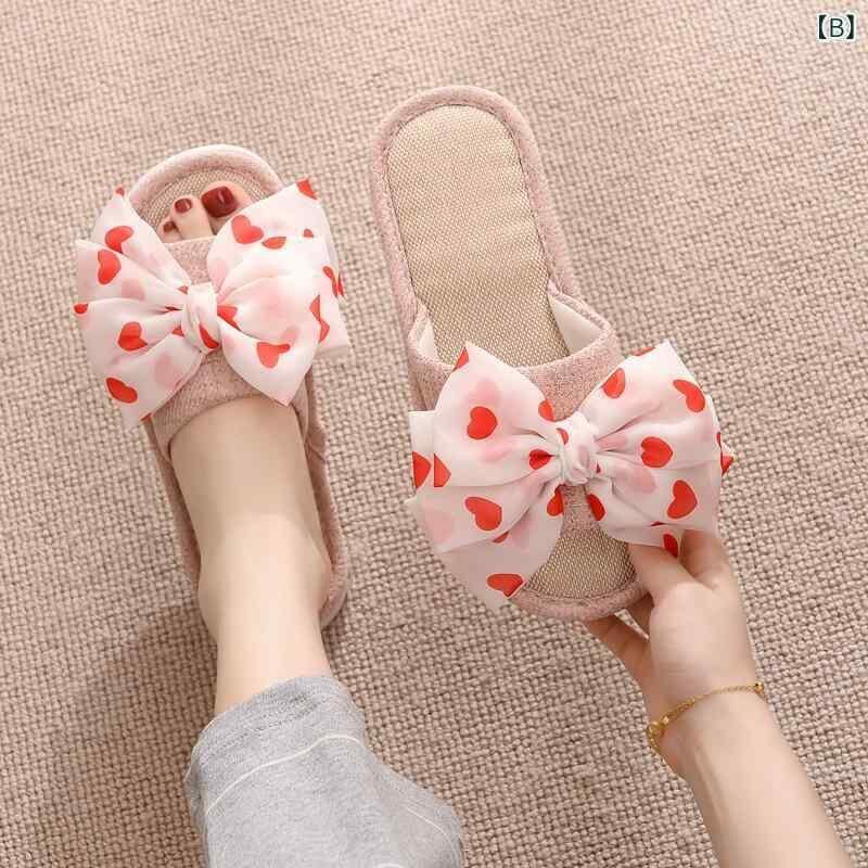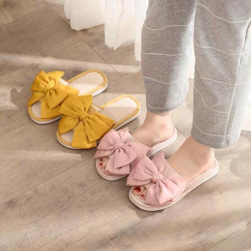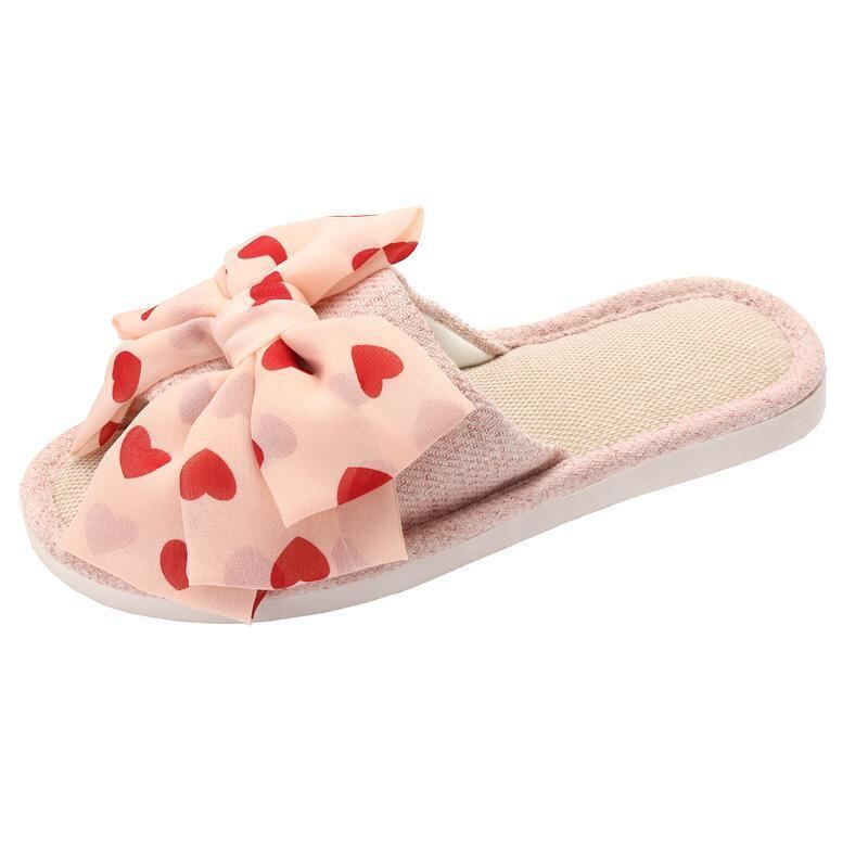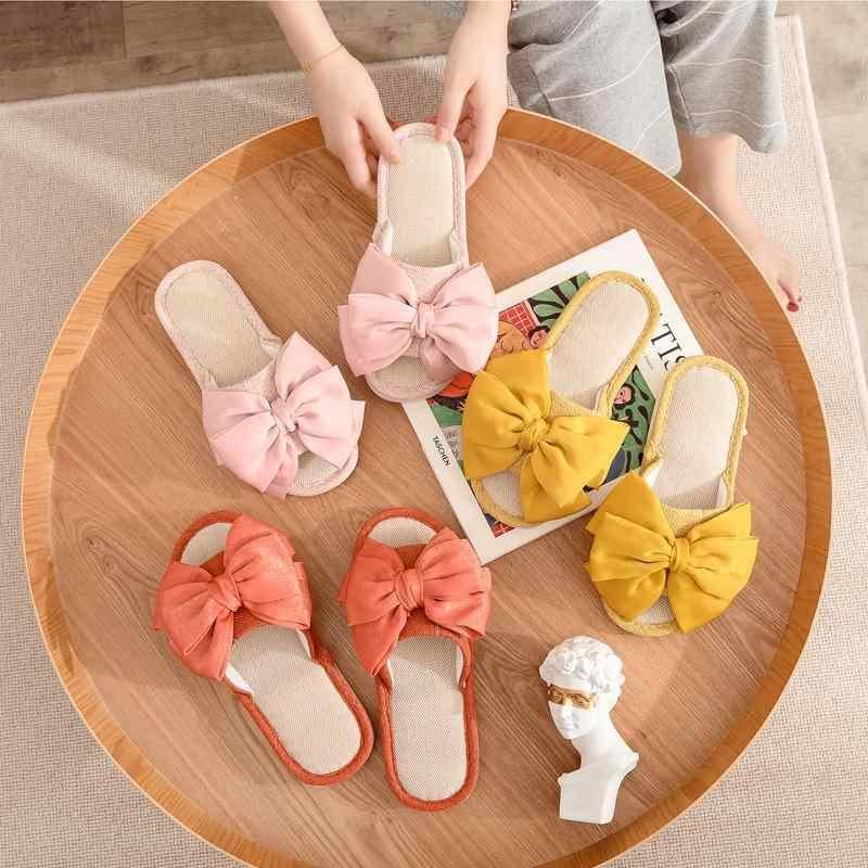 サンダル レディース リボン 麻 リネン オープントゥ 室内履き 屋外履き 屋内外兼用 通年 コットンリネン PVCソール 防滑 通気性 吸湿速乾 快適 韓国風 一字型 フラットソール