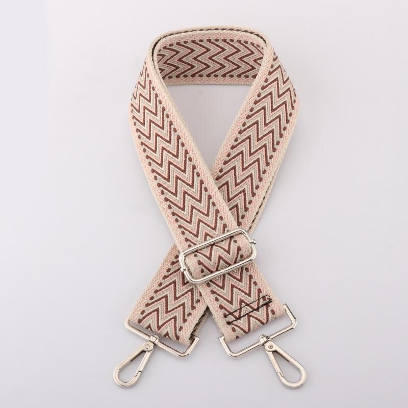 バッグストラップ 鞄 ショルダーストラップ 長さ調整可能 幅広 カラフル 民族風 エスニック柄 幾何学模様 肩掛け 斜め掛け 交換用 付け替え用 肩の負担軽減 ゴールドバックル シルバーバックル ガンメタルバックル