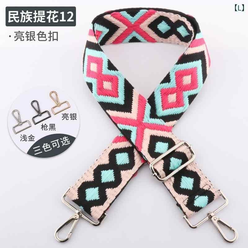 バッグストラップ ショルダーベルト レディース 女性用 大人カジュアル ワンショルダー 斜め掛け 調節可能 ポリエステル 5cm幅 太め 負担軽減 カラフル 民族風 エスニック柄 幾何学模様 交換用 肩紐