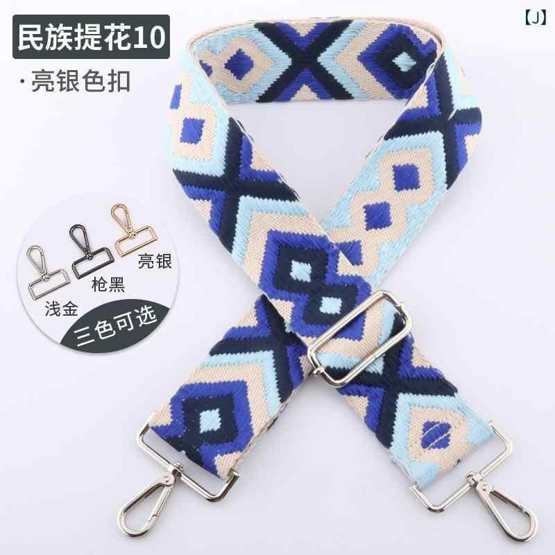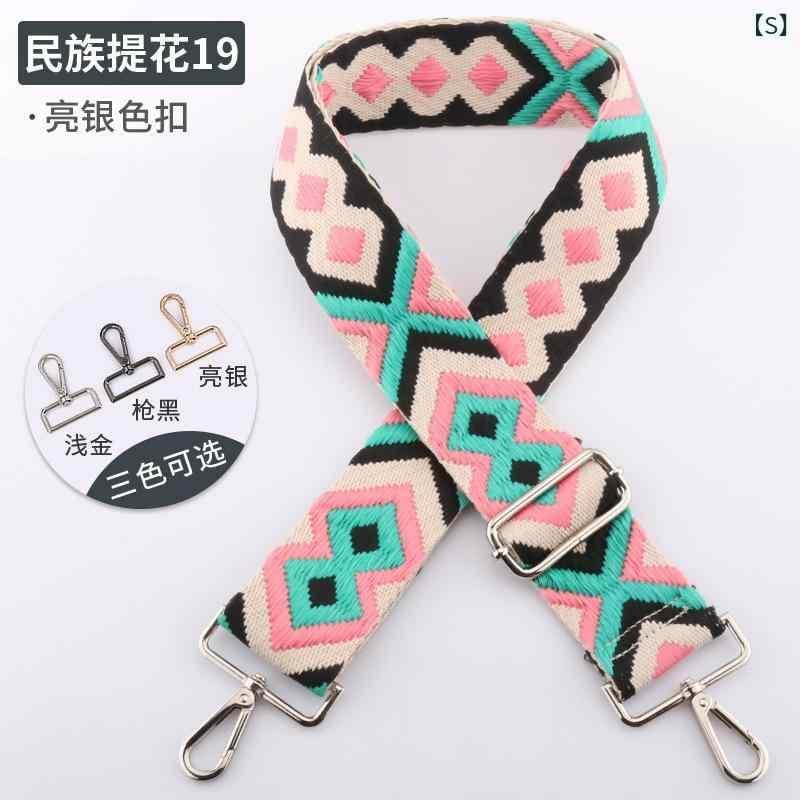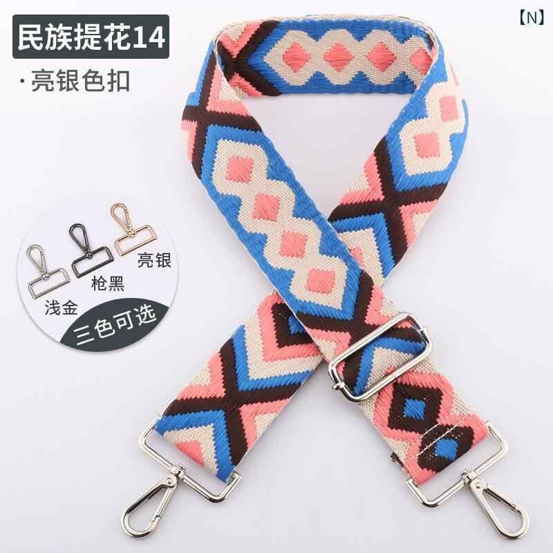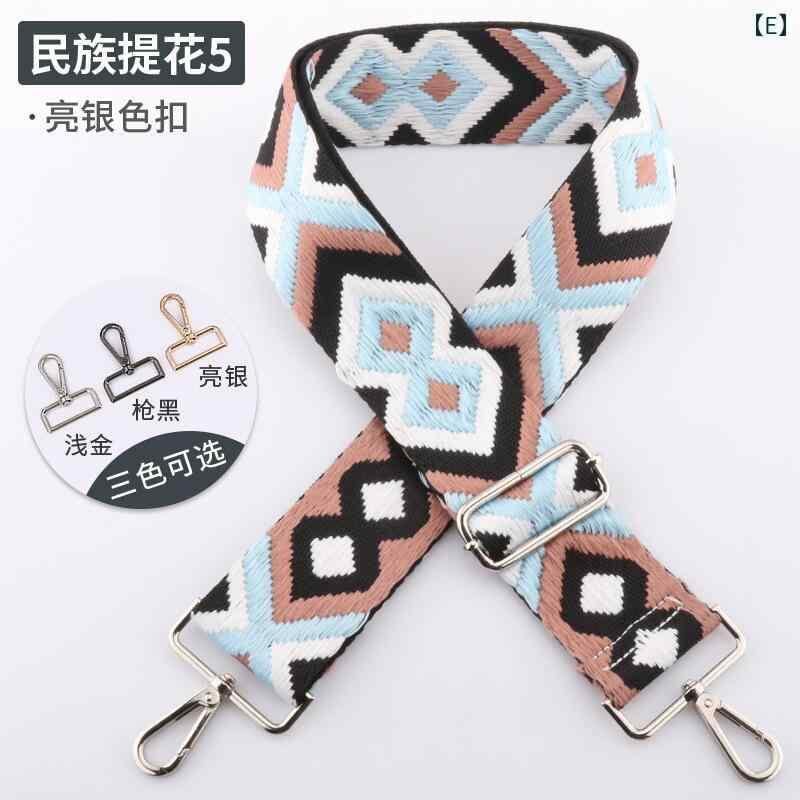 バッグストラップ ショルダーストラップ 鞄用ベルト 民族風 エスニック カラフル 幾何学模様 ポリエステル素材 5cm幅 広幅 太め 長さ調節 肩掛け 斜め掛け 負担軽減 安定感 デイリーユース 多色展開 配色デザイン