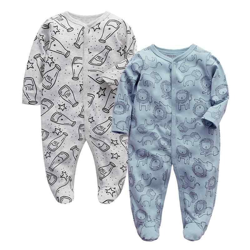 ベビー ロンパース カバーオール ボディスーツ 男の子 女の子 男女兼用 長袖 綿100% 純綿 コットン 肌に優しい 快適 やわらかい 普段着 部屋着 パジャマ 寝巻き オールシーズン 通年 総柄 プリント 前開き スナップボタン