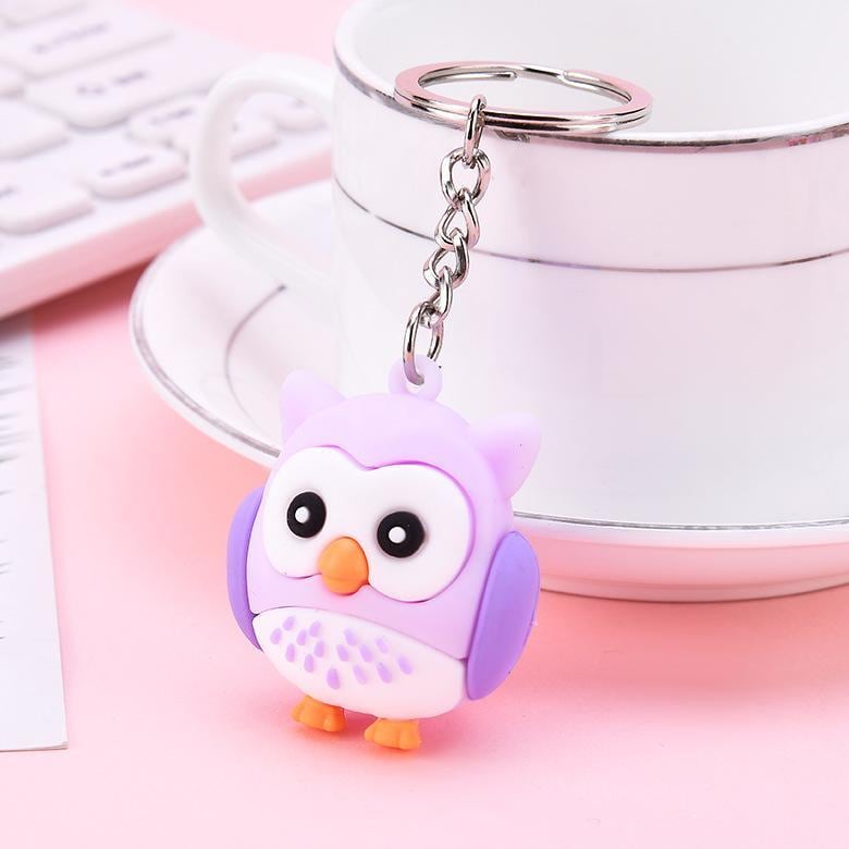 キーホルダー フクロウ かわいい 動物モチーフ キャラクター PVC 樹脂製 バッグチャーム ストラップ 学生 子供 友達 カップル 誕生日 卒業祝い プレゼント ギフト 青 紫 黄 ピンク 緑 茶 カラフル 多色展開