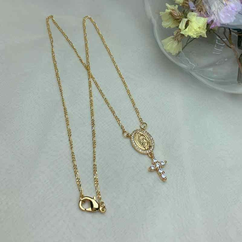 ネックレス レディース 十字架 聖母マリア ペンダント フィガロチェーン 鎖骨チェーン 欧米風 ファッション アクセサリー ジュエリー 合金製 メッキ加工 ゴールド 普段使い