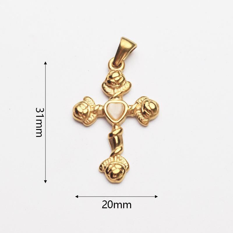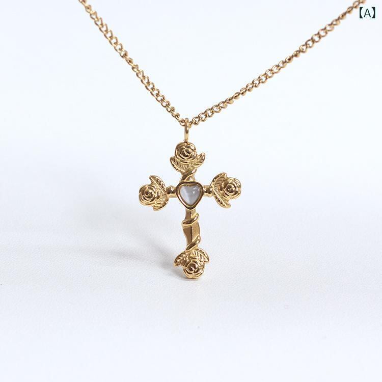 ネックレス レディース フレンチ ゴールド クロス 十字架 チタン鋼 猫眼石 ストーン埋め込み ペンダント 鎖骨チェーン ショート 上品 エレガント 高級感 クール ミニマル 白 ピンク 普段使い フォーマル パーティー