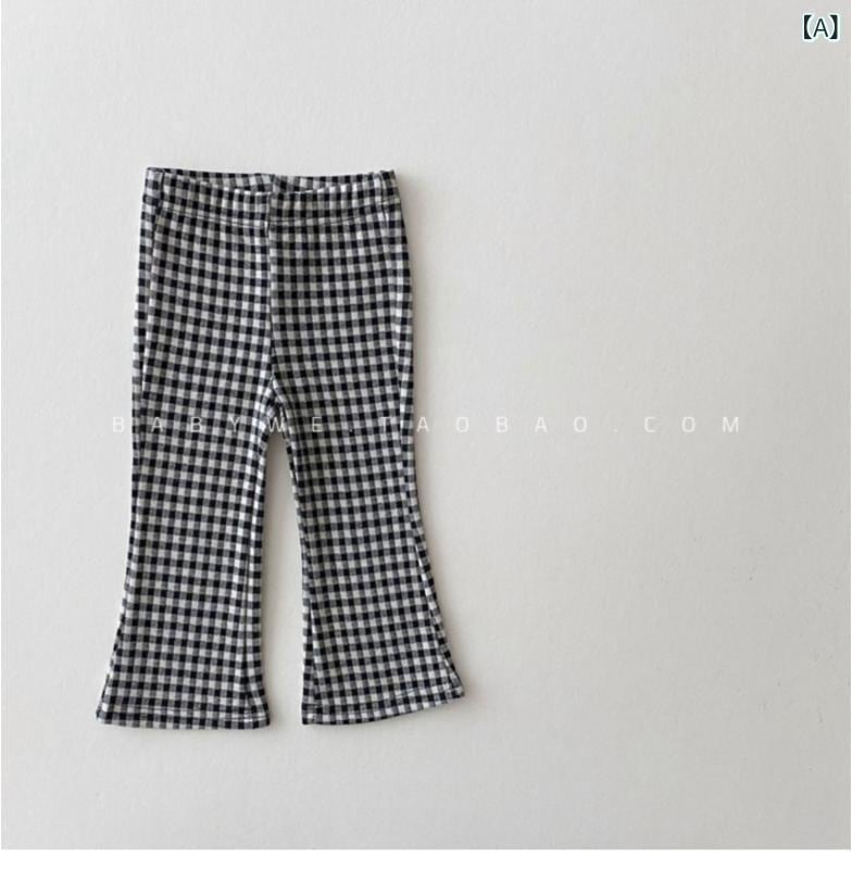 パンツ 女の子 キッズ チェック柄 フレアパンツ ベルボトム 長ズボン 韓国ファッション カジュアル ボトムス コットン 綿混 ソフトタッチ ミドルウエスト 普段使い 通園 通学 オールシーズン