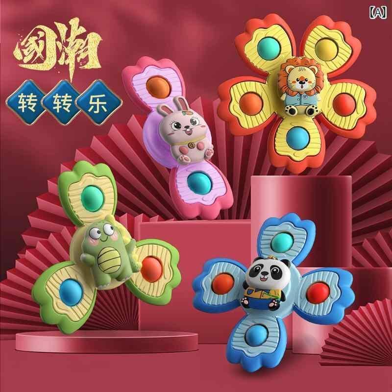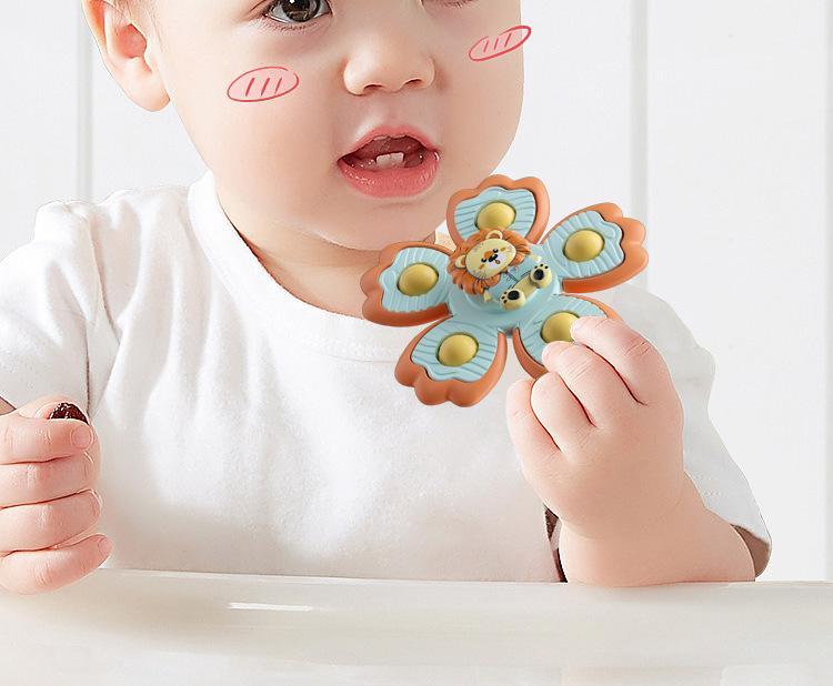 ベビー おもちゃ 知育玩具 赤ちゃん 幼児 吸盤 回転 コマ ガラガラ ラトル お風呂 水遊び キャラクター 動物 ライオン パンダ ウサギ 恐竜 ABS素材