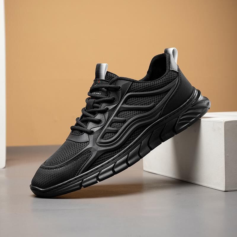 スニーカー メンズ 夏用 メッシュ素材 通気性 防臭 厚底 運動靴 カジュアルシューズ ウォーキング 普段使い デイリーユース ラウンドトゥ ローカット ブラック