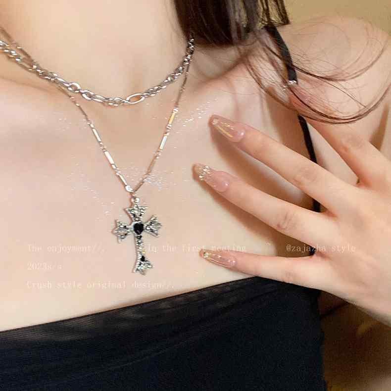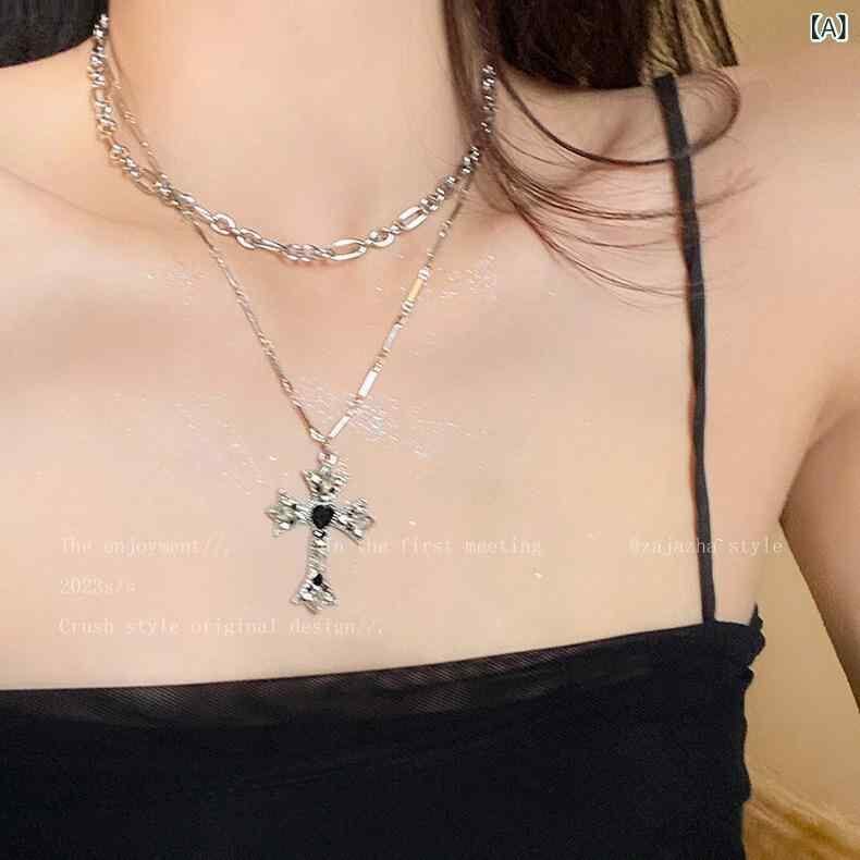ネックレス 男女兼用 二重 十字架 ペンダントチャーム 亜鉛合金製 メッキ加工 普段使い カジュアル ストリート系 ファッションアイテム 個性的 上品 高級感 高見え 甘辛ミックス クール スタイリッシュ 幾何学モチーフ カーブチェーン 存在感