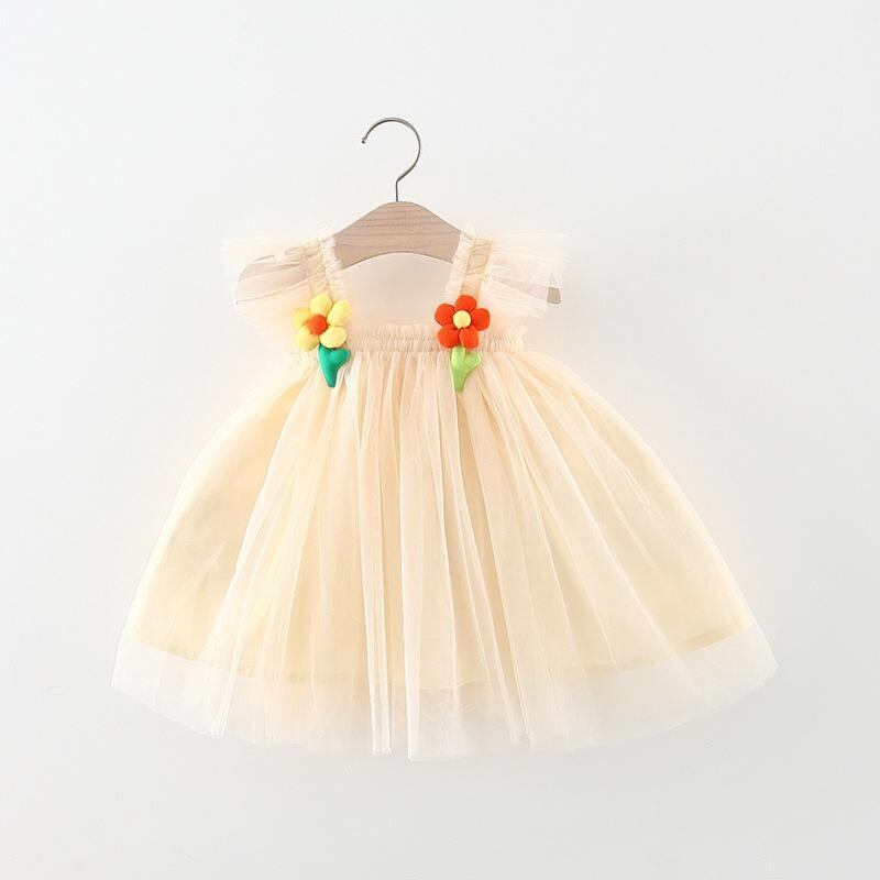 女児 ドレス 韓国風 立体フラワー チュール プリンセス フォーマル ワンピース 発表会 結婚式 誕生日 パーティー 夏 ノースリーブ かわいい ポリエステル コットン アイボリー ディープピンク グリーン 1歳 2歳 3歳 ベビー キッズ