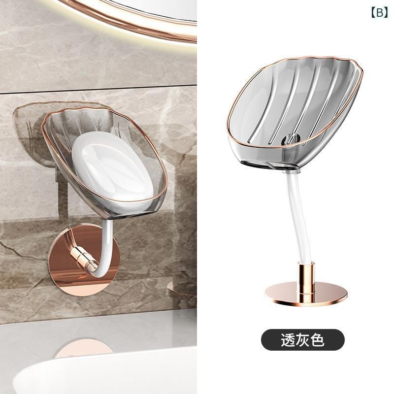 石鹸置き ソープディッシュ 吸盤式 穴あけ不要 壁掛け ウォールマウント 浴室 洗面所 水切りトレイ 角度調整可能 回転式 ソープホルダー バスルームラック 排水機能 ヌメリ防止 清潔 家庭用 クリア 透明 グレー グリーン