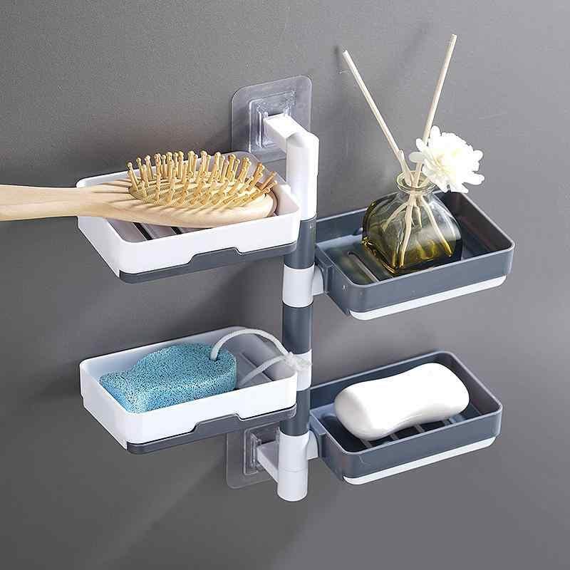 石鹸置き ソープディッシュ 穴開け不要 吸盤式 壁掛け 浮かせる収納 双方向回転 2段 水切り 排水 多層 バスルーム 洗面所 PP素材 プラスチック製