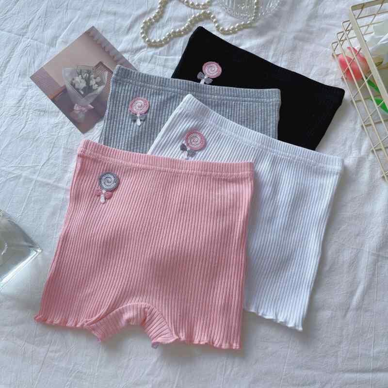 ショートパンツ キッズ 女の子 女児 純綿 コットン 綿素材 無縫製 シームレス ノンストレス 透け防止 インナーパンツ 安全パンツ スパッツ レギンス 2in1 一体型 ロリポップ柄 普段使い ルームウェア