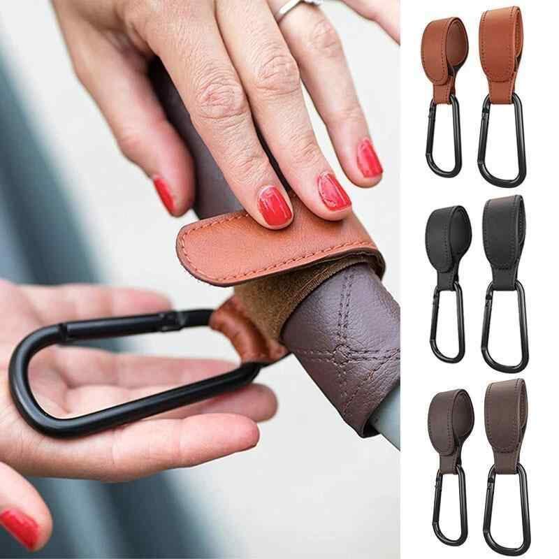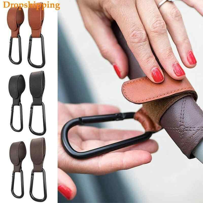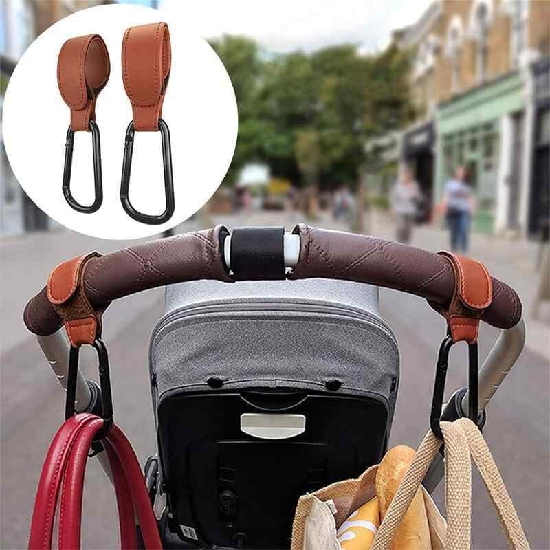 ベビーカーフック ベビー用品 PUレザー 荷物掛け マジックテープ カラビナ 多機能 簡単装着 チャイルドシート用 ハンドル お出かけ 携帯用 便利グッズ ブルー グレー ブラウン ブラック カーキ