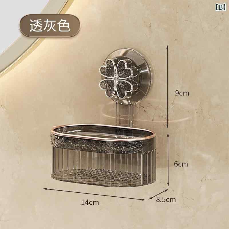 ソープディッシュ 吸盤式 クローバー 壁掛け 穴開け不要 水切り スポンジ置き バスルーム 洗面所 浴室用 排水機能 速乾 ヌメリ防止 プラスチック製 クリア ソープトレイ ホルダー | cybercart