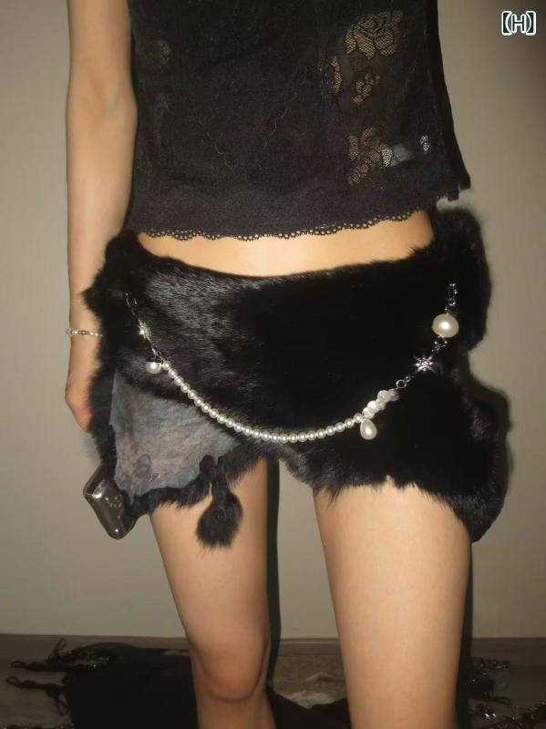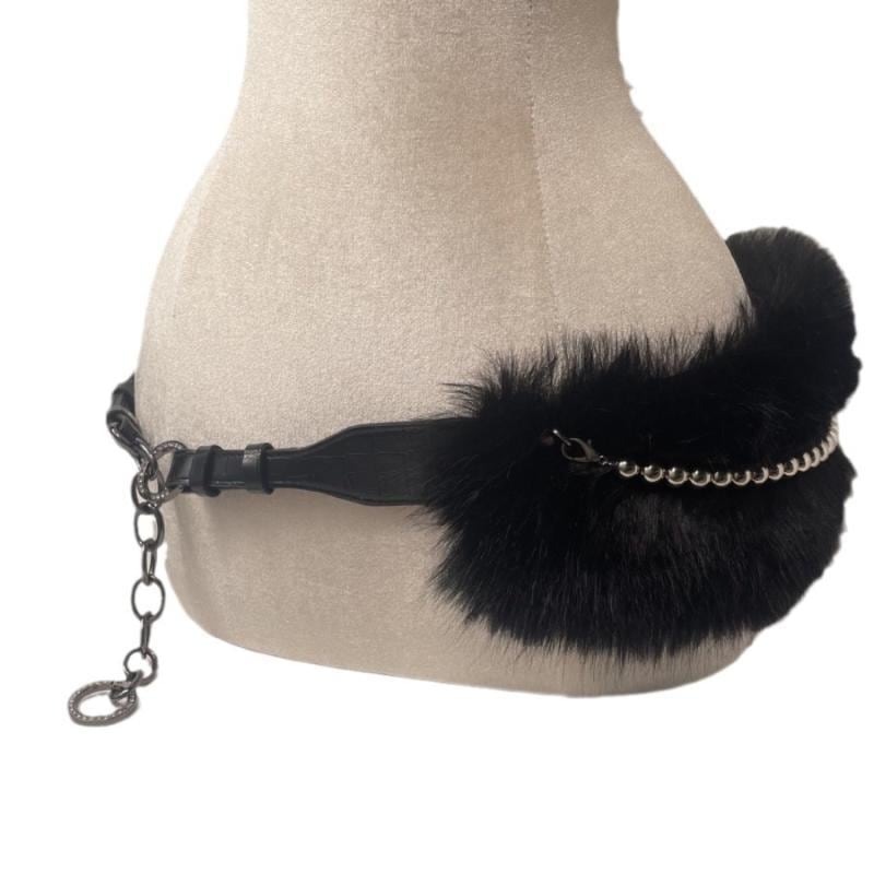 ベルト Y2k レトロ ヴィンテージ フェイクファー もこもこ コルセット ウエストマーク 太め PUレザー フック留め ウエストチェーン
