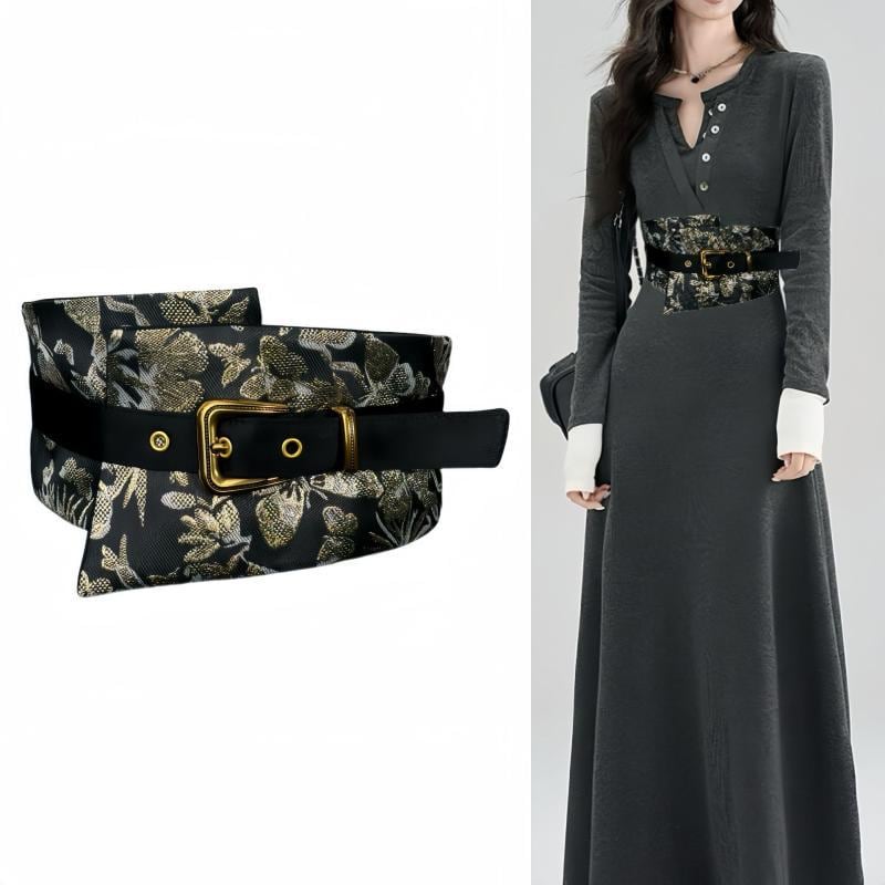 ベルト レディース 幅広 ウエストマークベルト コルセットベルト サッシュベルト 民族風 中華風 レトロ クラシック デザイン性 装飾 高級感 織物 合金バックル ピンバックル スカートコーデ コート アウター 着回し自在 ファッション小物