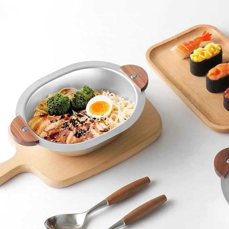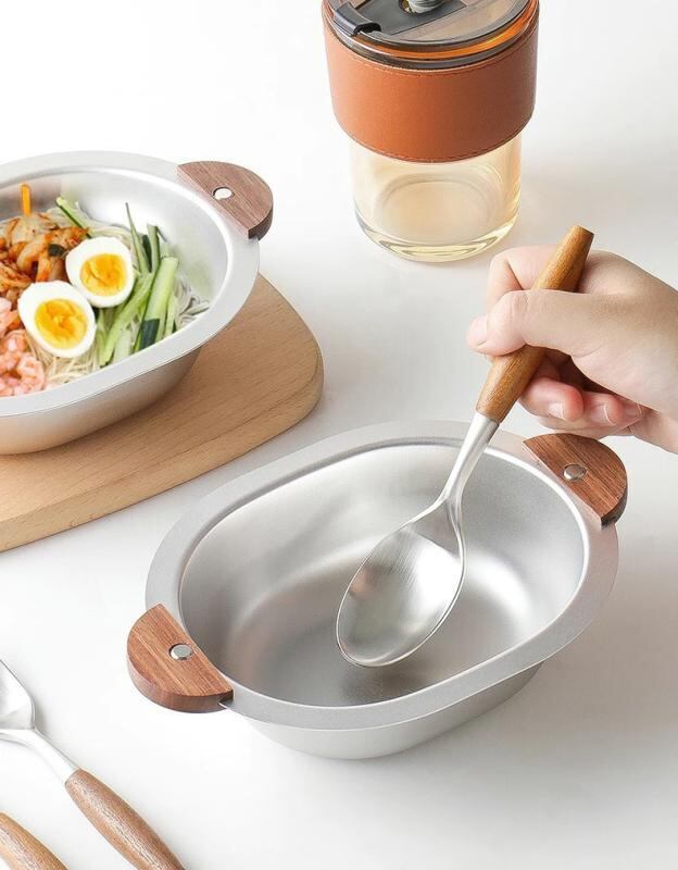 ボウル キッズ 子供用 304ステンレス製 クマ型 ウォールナット木柄 両手持ち手付き 楕円形 サラダ ランチ ご飯 お食事用 韓国風 上品 かわいい おしゃれ シルバー ゴールド