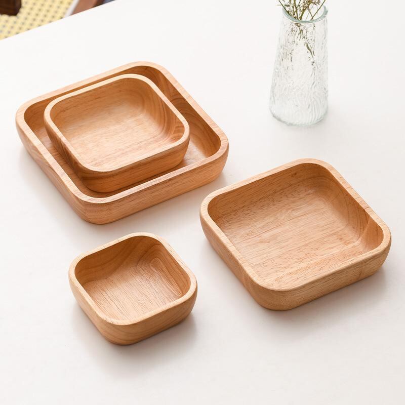 ボウル ラバーウッド 天然木 無垢材 木製 和風 正方形 スクエア サラダ フルーツ 菓子 スナック おやつ デザート 食卓 カフェ ダイニング シンプル ナチュラル 普段使い 器 プレート