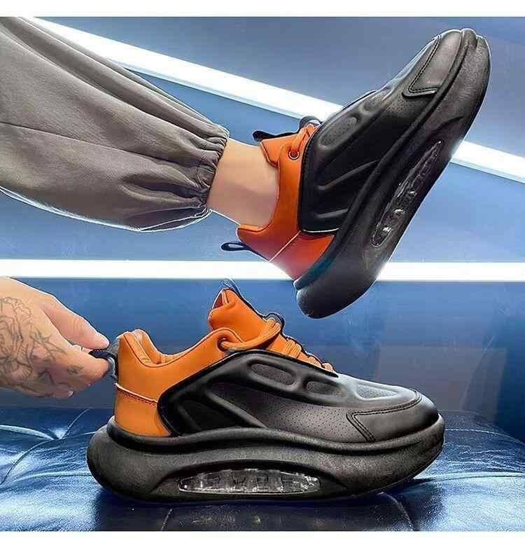 ・カテゴリ: ダッドシューズ ; ・スタイル: カジュアル ; ・機能: 通気性 ; ・性別: メンズ ; ・柄: 無地 ; ・アッパー素材: 人工PU ; ・ソール素材: ゴム ; ・適用スポーツ: 汎用 ; ・留め具: シューレース ; ・デザイン要素: ステッチ ; ・ヒール形状: 厚底 ; ・裏地素材: メッシュ ; ・履き口: 浅め(7cm以下) ; ・シューズ丈: ミドルカット ; ・つま先形状: ラウンドトゥ ; ・ヒールの高さ: ミドルヒール(約3-5cm) ; ・ソール製法: インジェクション製法 ; ・インソール素材: EVA ; ・適用シーン: デイリー ; ・カラー展開: ホワイト、オレンジブラック、ホワイトブラック ; ・サイズ展開: 39、40、41、42、43、44