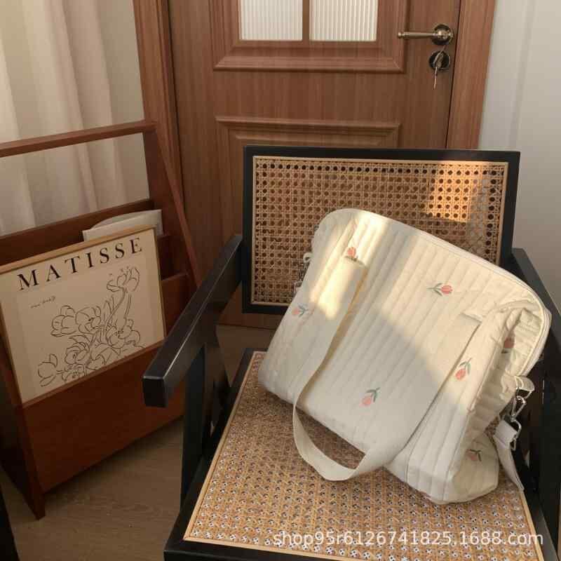 マザーズバッグ レディース ママリュック ベビーカーフック付き 吊り下げ おむつポーチ キルティング コットン 刺しゅう ファスナー 大容量 多機能 お出かけ 普段使い 花柄