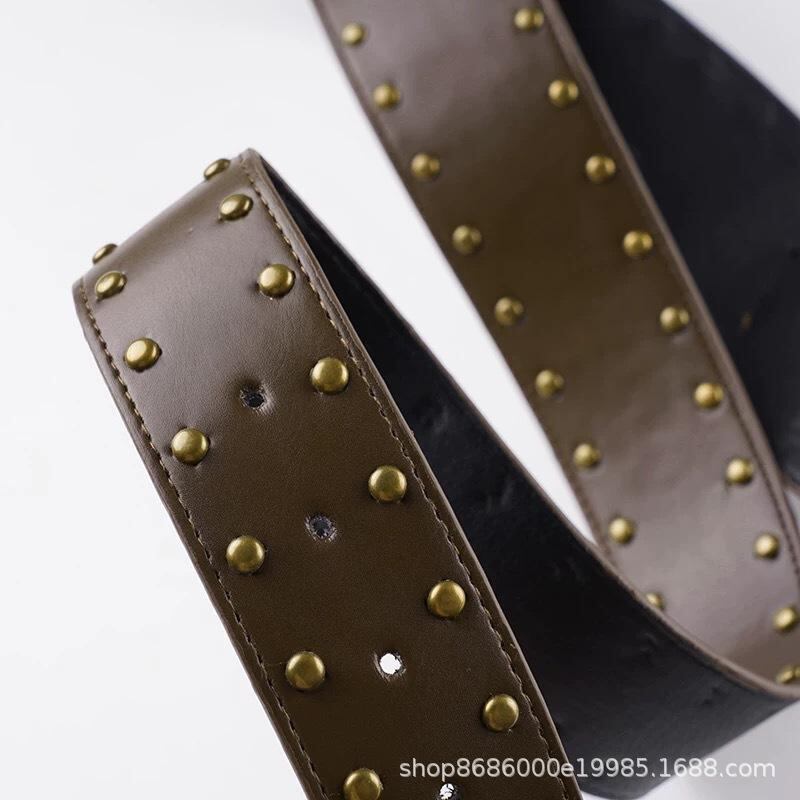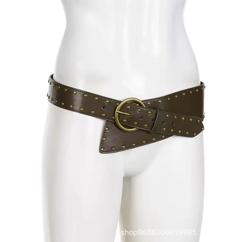 ベルト レディース パンク レトロ ストリート メタルスタッズ 鋲 フェイクレザー PUレザー 幅広 ワイド ウエストマーク コルセット 太ベルト 個性的 ブラウン ブラック カジュアル
