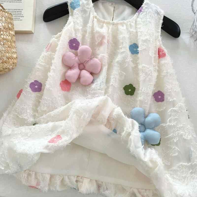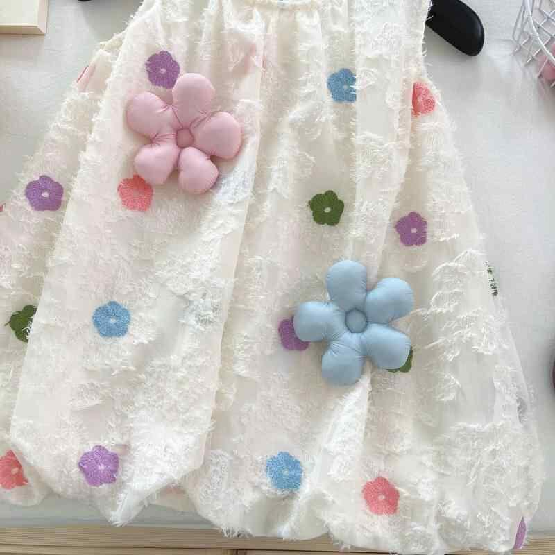 ワンピース 女の子 子供 キッズ ドレス 立体花柄 3Dフラワー スイート かわいい おしゃれ 上品 爽やか バブルスカート Aライン 綿 コットン ポリエステル ベージュ 夏 お出かけ リゾート