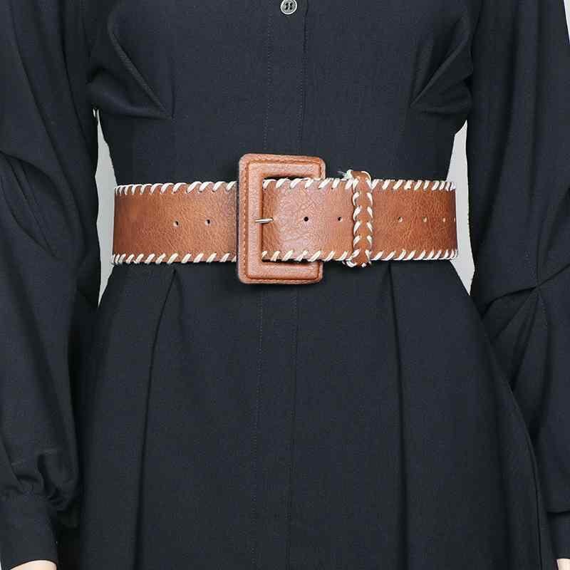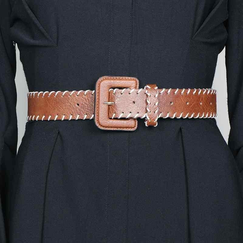 ベルト レディース オールドマネー風 上品 フレンチ レトロ スタイリッシュ 個性的 デザイン 多用途 ワイド 編み込み リゾート 通勤 フェイクレザー ブラウン ピンバックル