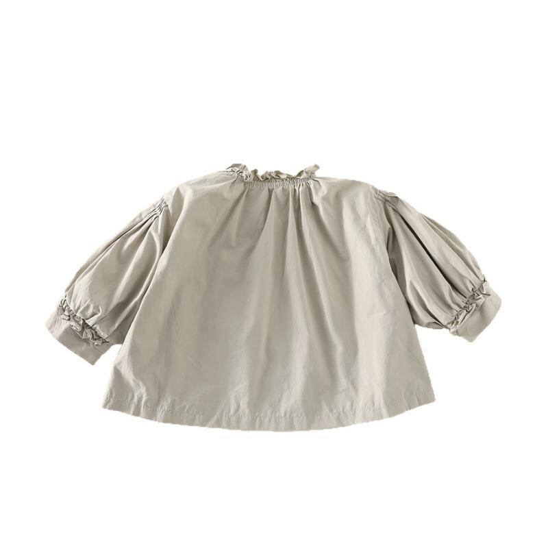 アウター ベビー 幼児 子供 女の子 暖かな秋服 綿 コットン100% 柔らかい肌触り 長袖 ミドル丈 フリル襟 ダブルボタン 刺繍 韓国風 おしゃれ かわいい グレー グリーン ジャケット ブラウス