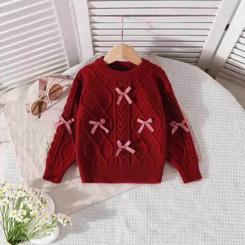 キッズ 女の子 厚手 プルオーバー ニット リボン 長袖 長ズボン セットアップ 赤 スウィートスタイル 柔らかい素材 秋 冬 春 ボトムス 保温 ラウンドネック カジュアル 通園 通学 着回し
