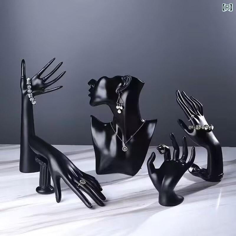 ジュエリースタンド アクセサリースタンド 樹脂製 ネックレス ピアス ブレスレット ディスプレイ 一体型 マネキン トルソー ネックトルソー 店舗用 ホワイト ブラック