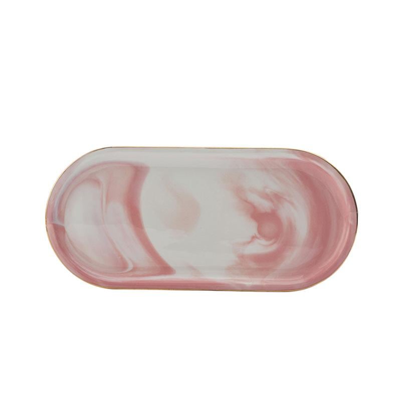プレート 北欧風 ピンク 大理石調 陶磁器 金縁 収納トレー アクセサリートレイ 食事用 寿司皿 おしゃれ 小物入れ ディナープレート 長方形 楕円形 大人用 高級感
