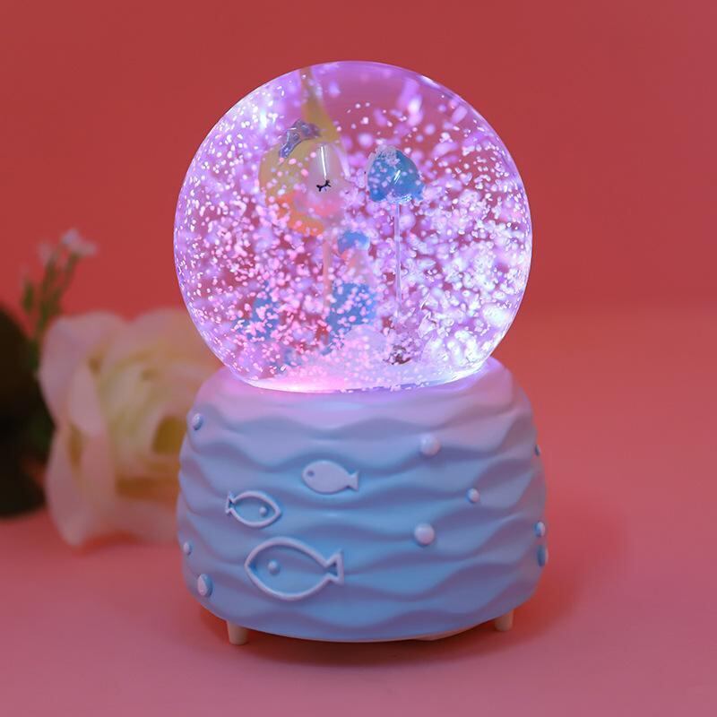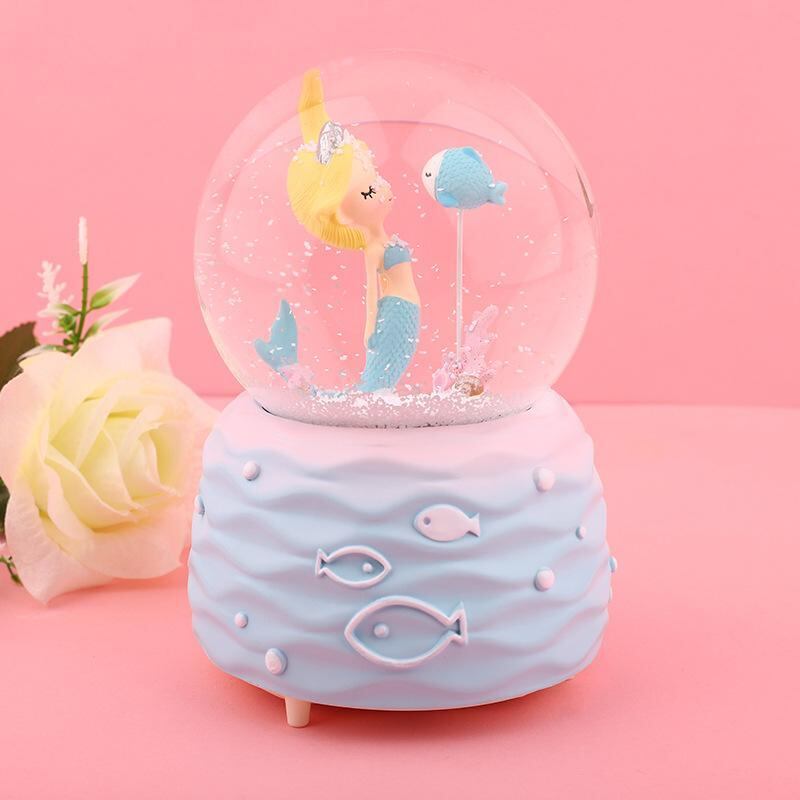 オルゴール 女性向け 人魚モチーフ クリスタルボール スノードーム LEDライト 発光 樹脂製 インテリア 置物 誕生日 バレンタイン 記念日 クリスマス プレゼント