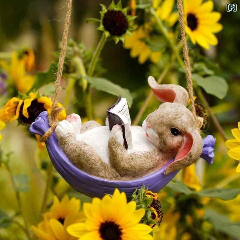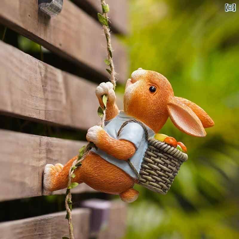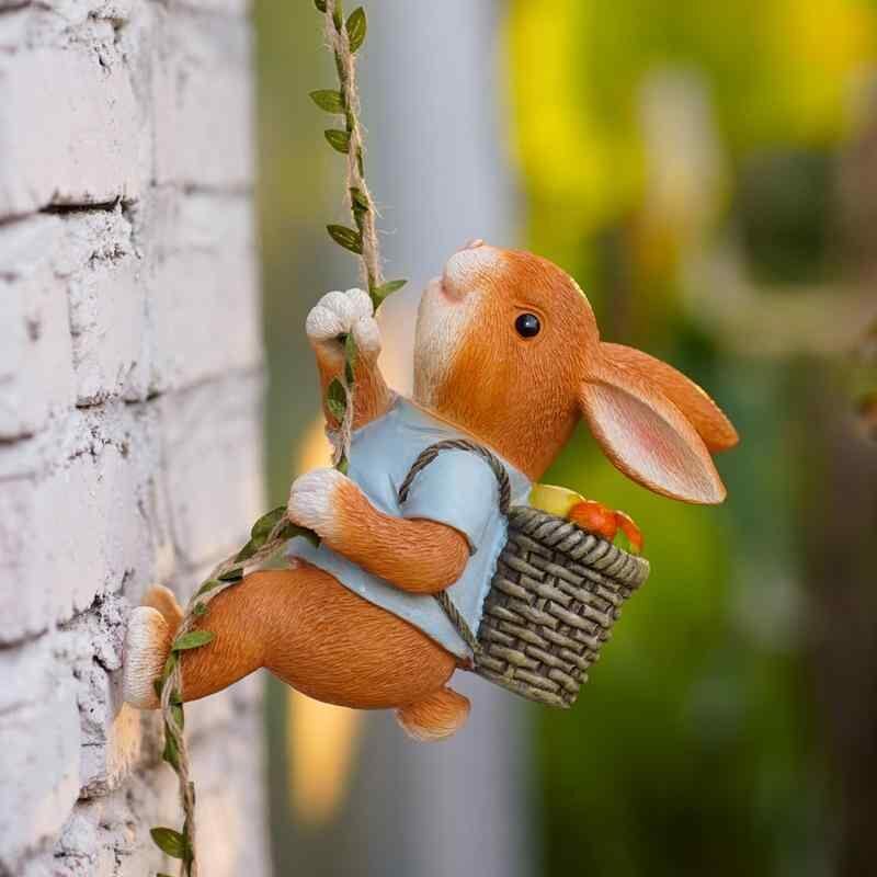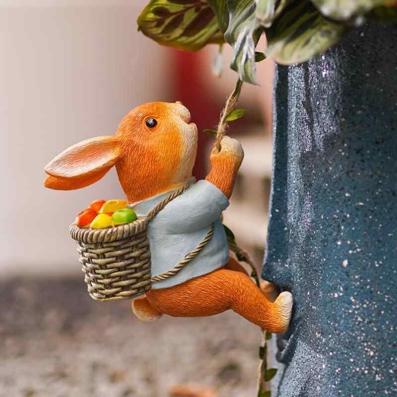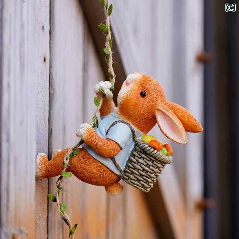 ガーデンオーナメント かわいい 動物 壁掛け ウサギ 登り オブジェ 屋外 庭園装飾 鉢飾り 木飾り パイプ飾り ベランダ テラス エクステリア ミニチュア フィギュア