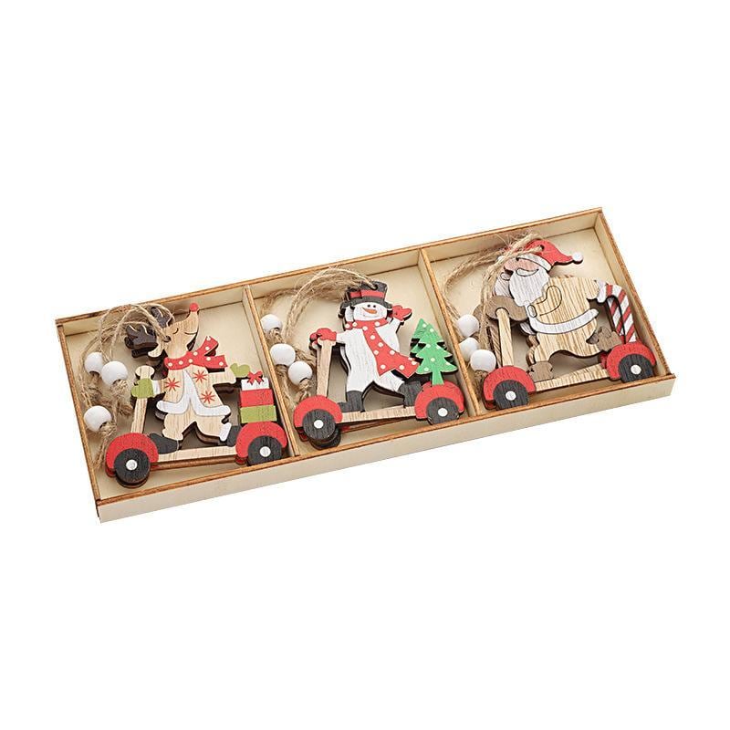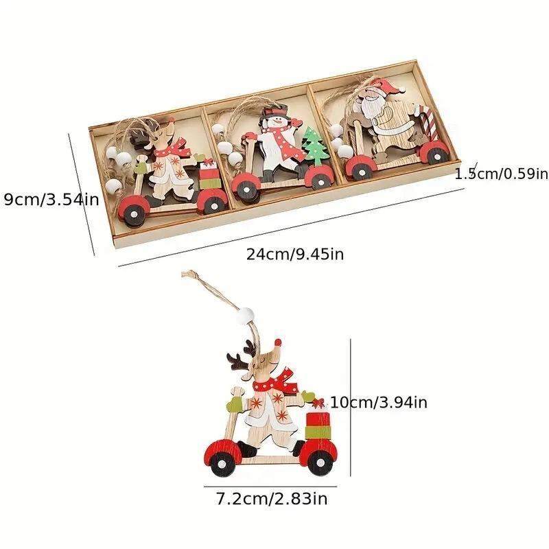 クリスマスオーナメント キッズ 子供用 かわいい キャラクター サンタクロース スノーマン トナカイ 木製 ミニ 吊り下げ 飾り デコレーション クリスマスツリー ギフト プレゼント 9個セット 彩色 木工芸品