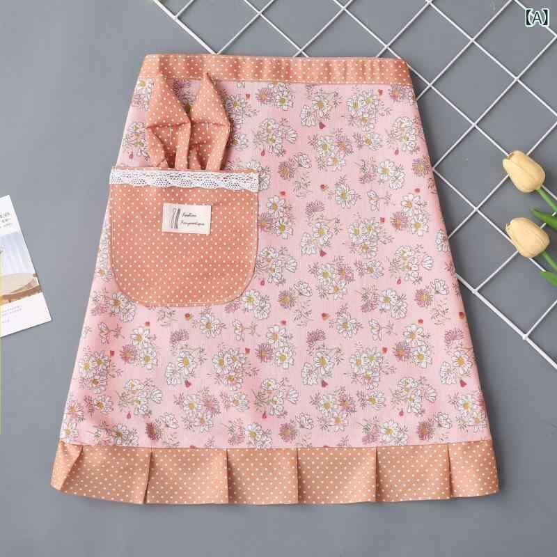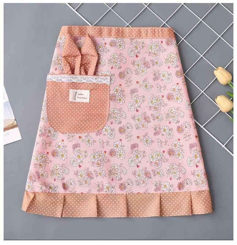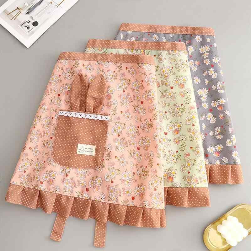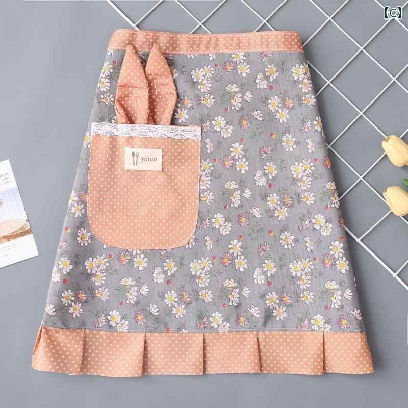 エプロン レディース 女性用 ポリエステル キャンバス地 うさ耳 ハーフ 防汚 汚れ防止 耐摩耗性 丈夫な生地 キッチン 料理 家事 カフェ ガーデニング 業務用 作業用 腰巻 ショート丈 ミドル丈 小花柄 ポケット付き シンプル かわいい