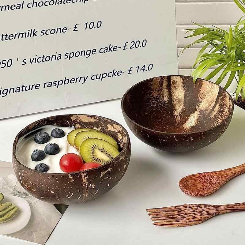 ボウル ココナッツボウル 天然木製 おしゃれ SNS映え 丸型 フルーツサラダ ヨーグルト オートミール シリアル デザート 朝食 スムージー 家庭用 かわいい ナチュラル エコ サステナブル