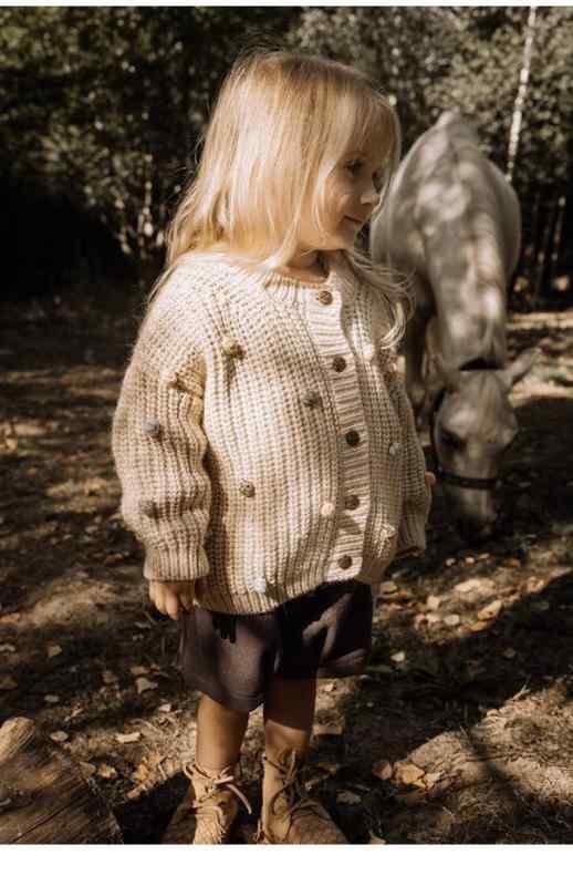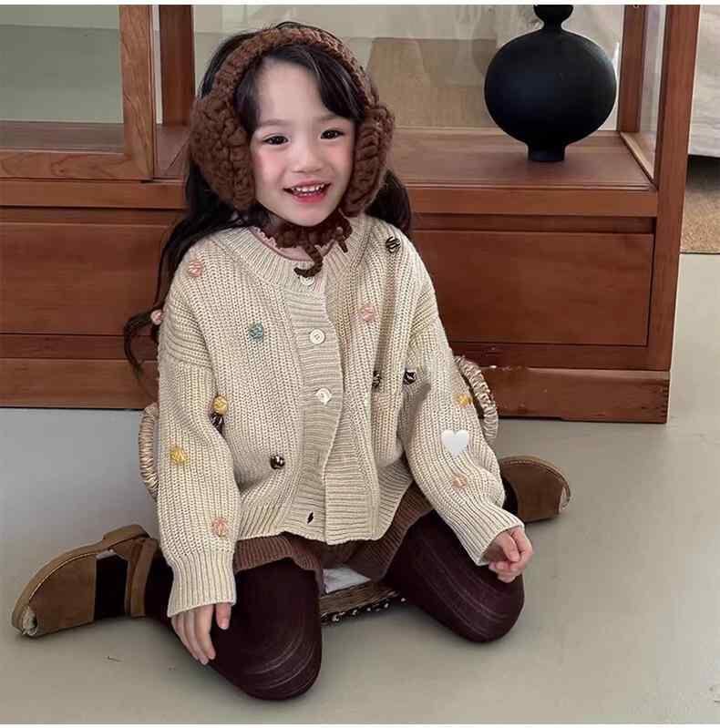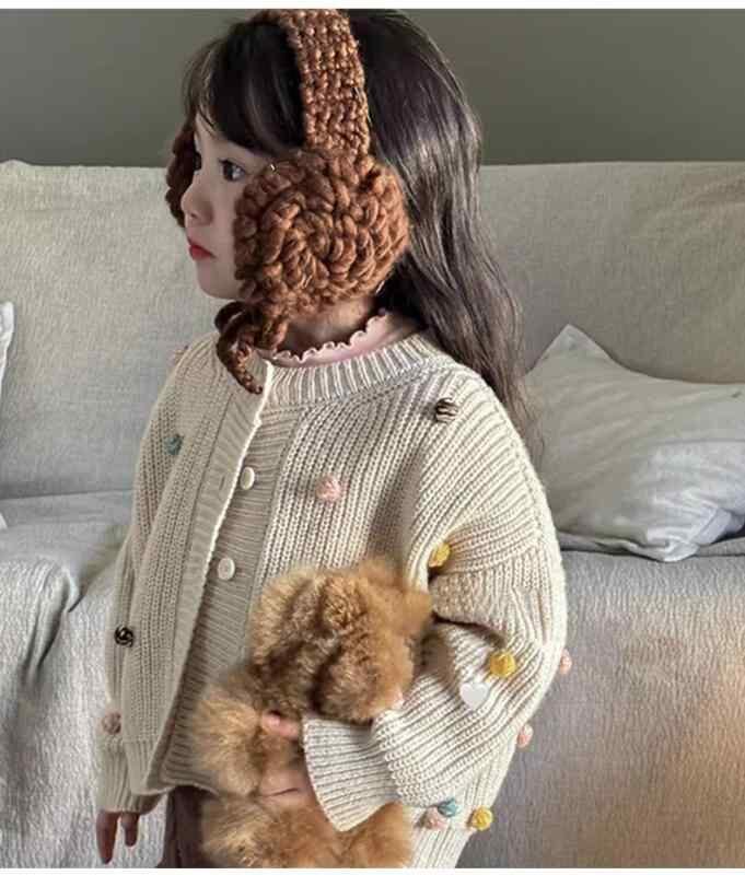 カーディガン 女の子 キッズ カラフル ポンポン ニットセーター 暖かい 厚手 保温 やわらか素材 ラウンドネック 秋冬 おしゃれ かわいい 北欧風 アイボリー 通園 通学 普段使い 着回し