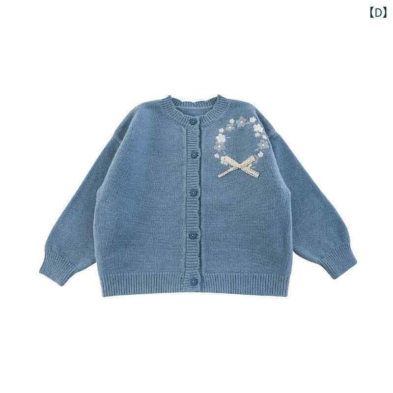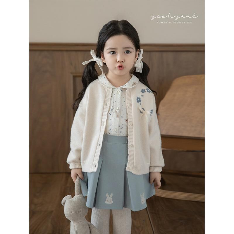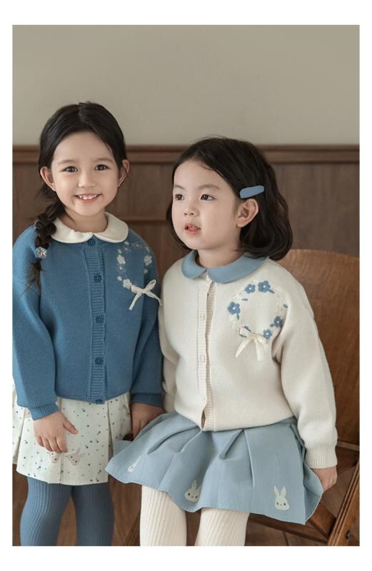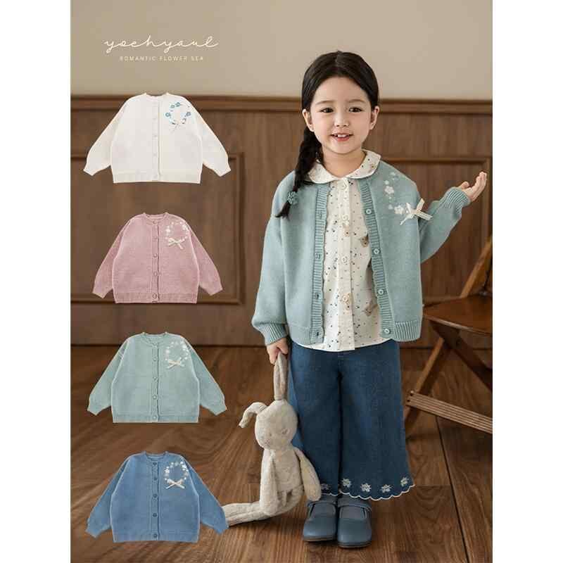 キッズ 女の子 ニットカーディガン 秋物 アクリル素材 花柄 立体リボン かわいい ゆったり ドロップショルダー カジュアル 柔らかい 長袖 丸首 前開き 通園 通学 羽織り