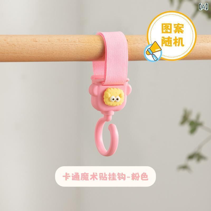 ベビーカー 荷物フック マジックテープ式 キャラクターデザイン 360度回転 多機能 マルチフック PP素材 丈夫 カバン掛け 小物掛け ベビー用品 お出かけ グッズ アクセサリー ピンク ブラウン イエロー ブルー