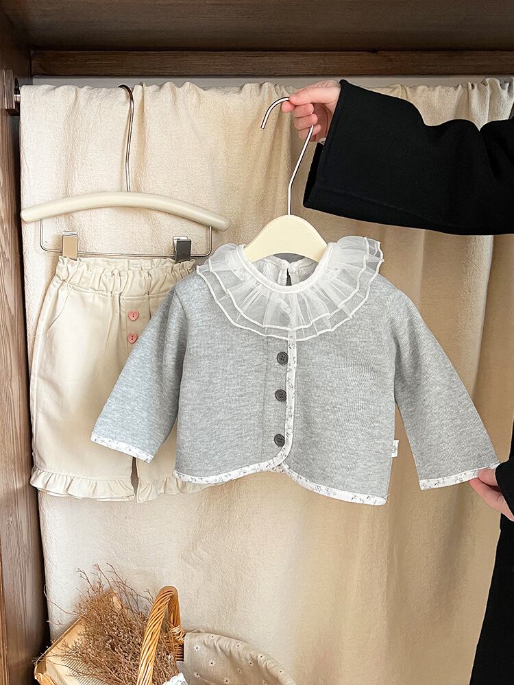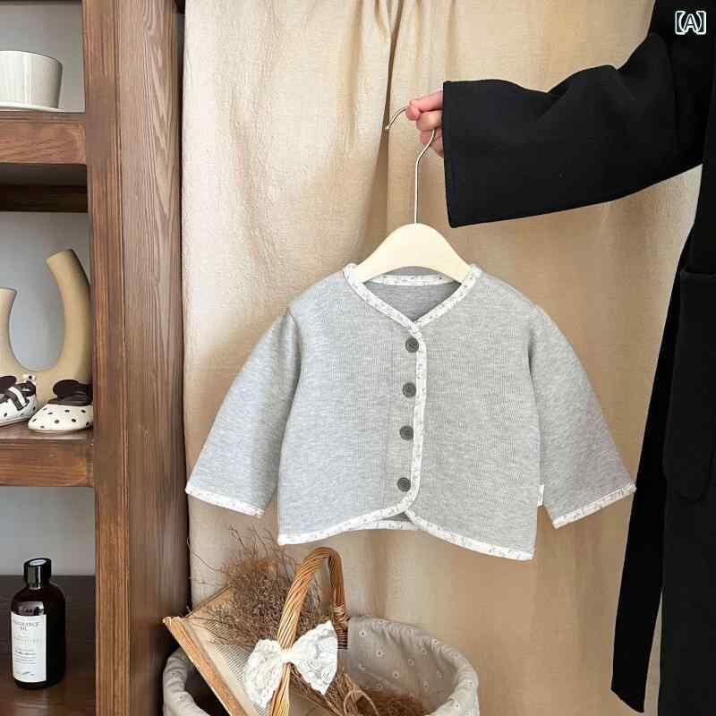 カーディガン ベビー キッズ 女の子 春秋物 韓国風 無地 おしゃれ カジュアル 上品 綿 コットン 長袖 ラウンドネック 丸首 ソフトタッチ 柔らかい 前開き シングルボタン 着回し 普段使い デイリーユース 羽織り トップス