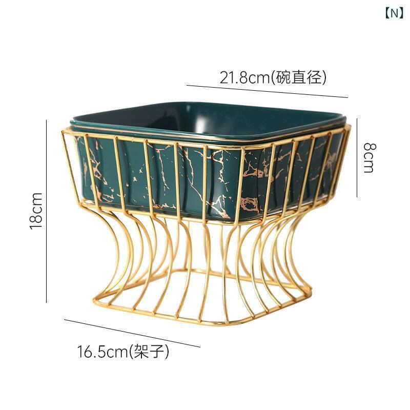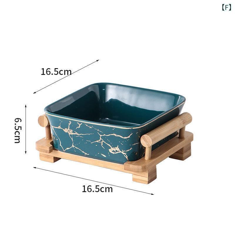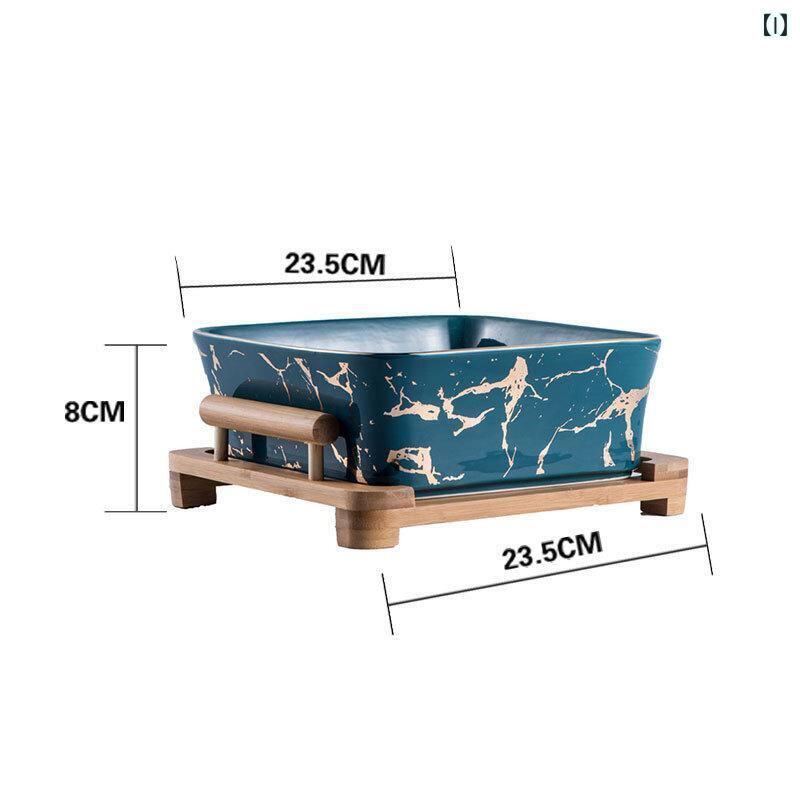 ボウル 北欧風 シンプル おしゃれ スクエア 大理石調 金縁 陶器製 サラダ デザート フルーツ用 盛り付け皿 高級感 モダンな木製スタンド付き セラミック プレート 白 黒 緑